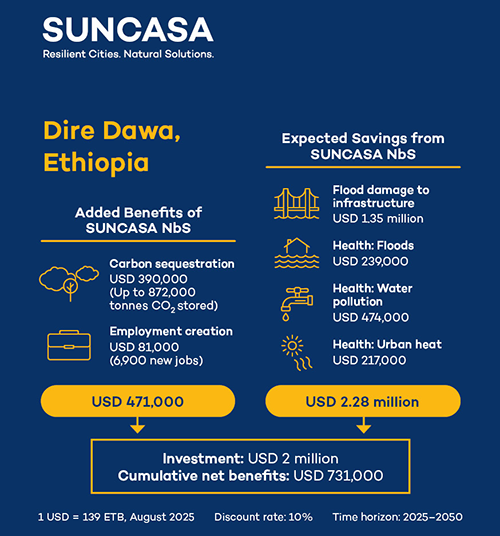 The SAVi assessment of the SUNCASA interventions in Dire Dawa shows that investing in NbS brings strong social, environmental, and economic returns.